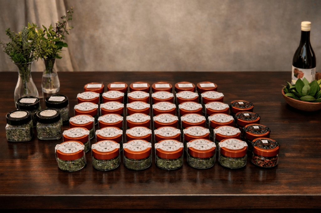 Raccogliamo le nostre erbe aromatiche rigorosamente a mano, nel momento di massima balsamicità e le essicchiamo in maniera naturale col “metodo AlMa”. Le confezioniamo già pronte all’uso in cucina in eleganti barattoli di vetro per preservarne al meglio gli aromi ed i colori.